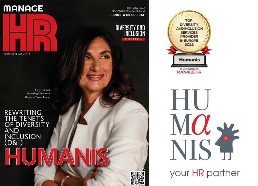 Για τη Humanis, το D&I δεν είναι απλώς ένα τσιτάτο ή ένα βήμα “τσεκάρω το κουτάκι”! Για εμάς “είναι μια νοοτροπία και ένα ισχυρό εργαλείο ηγεσίας για τους οργανισμούς να αναπτύσσουν υπεύθυνους ηγέτες, να δημιουργούν ομάδες υψηλών επιδόσεων, να καλλιεργούν μια κουλτούρα συνεργασίας και να επιδεικνύουν αριστεία”, όπως δηλώνει η Διευθύνουσα Σύμβουλος μας Μαίρη Μπιτούνη, στη συνέντευξή της που παρουσιάζεται στην ειδική έκδοση D&I του περιοδικού Manage HR. Η έκδοση αυτή φτάνει σε πάνω από 153.000 συνδρομητές υπεύθυνους λήψης στρατηγικών αποφάσεων στο Ηνωμένο Βασίλειο και την Ευρώπη και δεν θα μπορούσαμε να είμαστε περισσότερο περήφανοι που η Humanis αναγνωρίστηκε μέσα στις 10 Κορυφαίες εταιρίες παροχής υπηρεσιών Διαφορετικότητας και Συμπερίληψης.