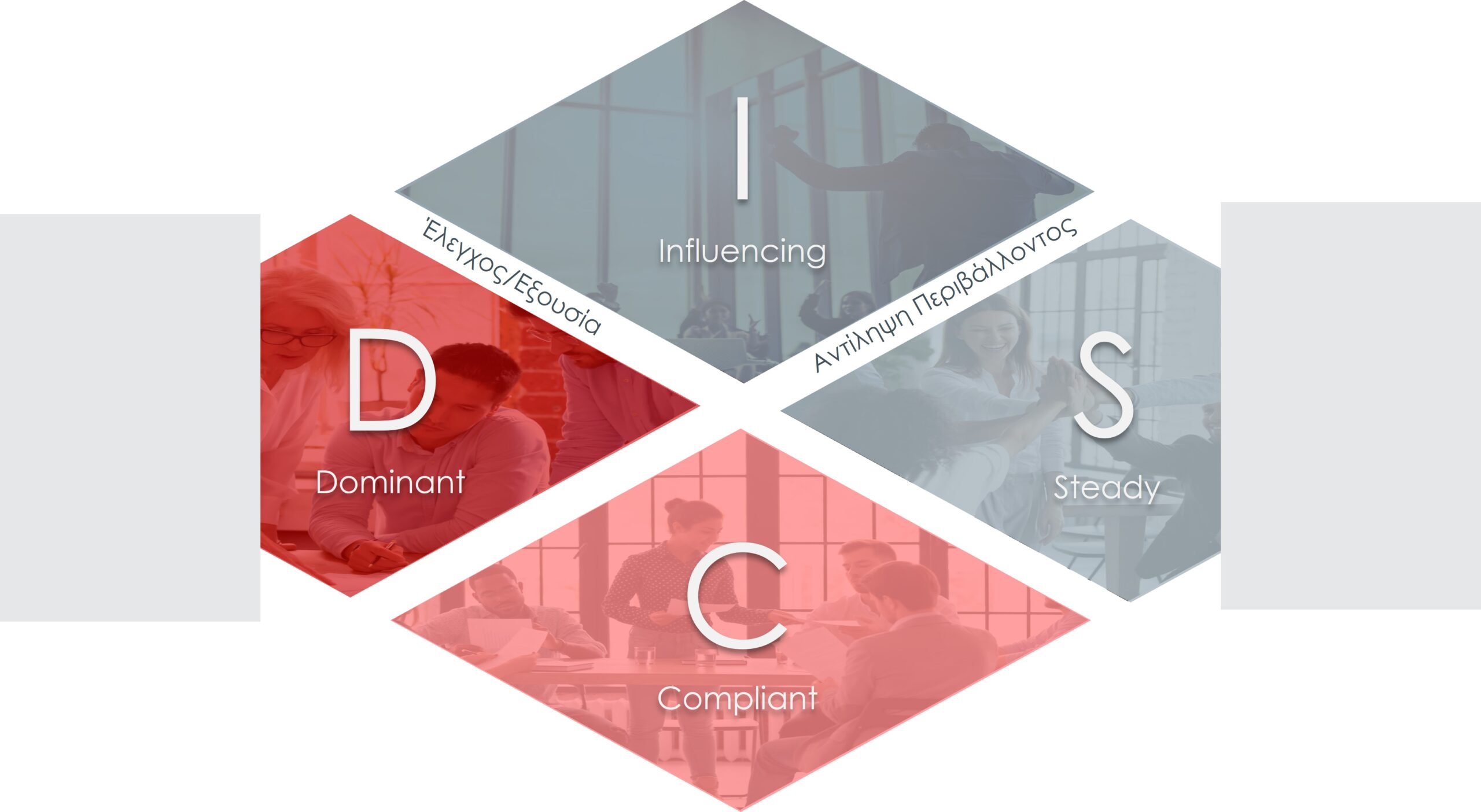 Το μοντέλο προφίλ συμπεριφοράς D.I.S.C. καταγράφει τις συμπεριφορές που υιοθετούμε ανάλογα με το κατά πόσο πιστεύουμε ότι ελέγχουμε το περιβάλλον (άξονας Ελέγχου/Εξουσίας) και με το πώς αντιλαμβανόμαστε το περιβάλλον (άξονας Αντίληψης/Περιβάλλοντος).